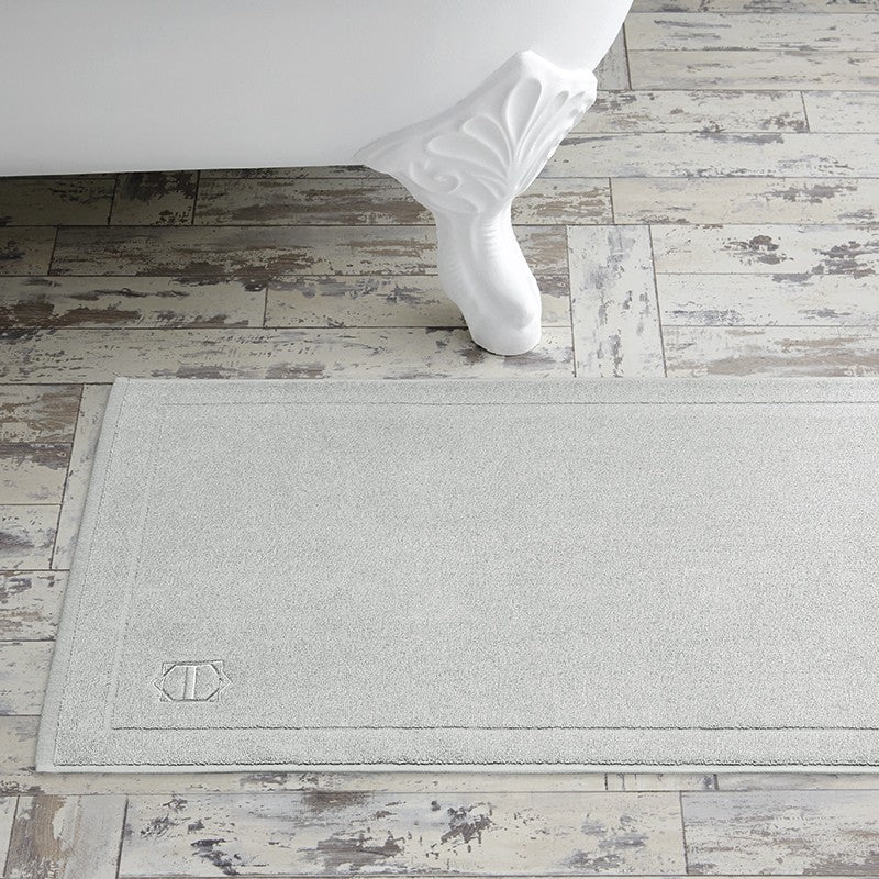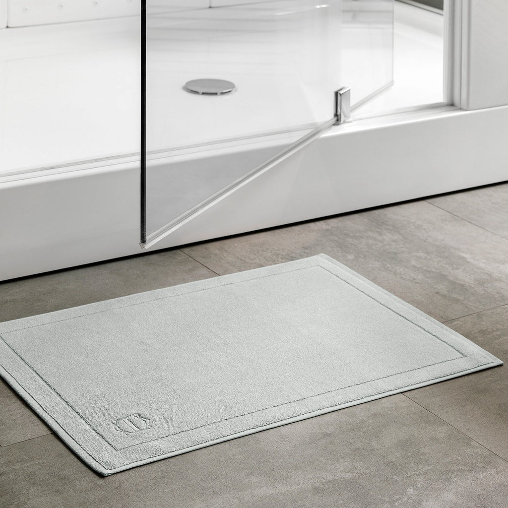 Details: Single-sided bath mat with short, thick pile and embroidered branding.