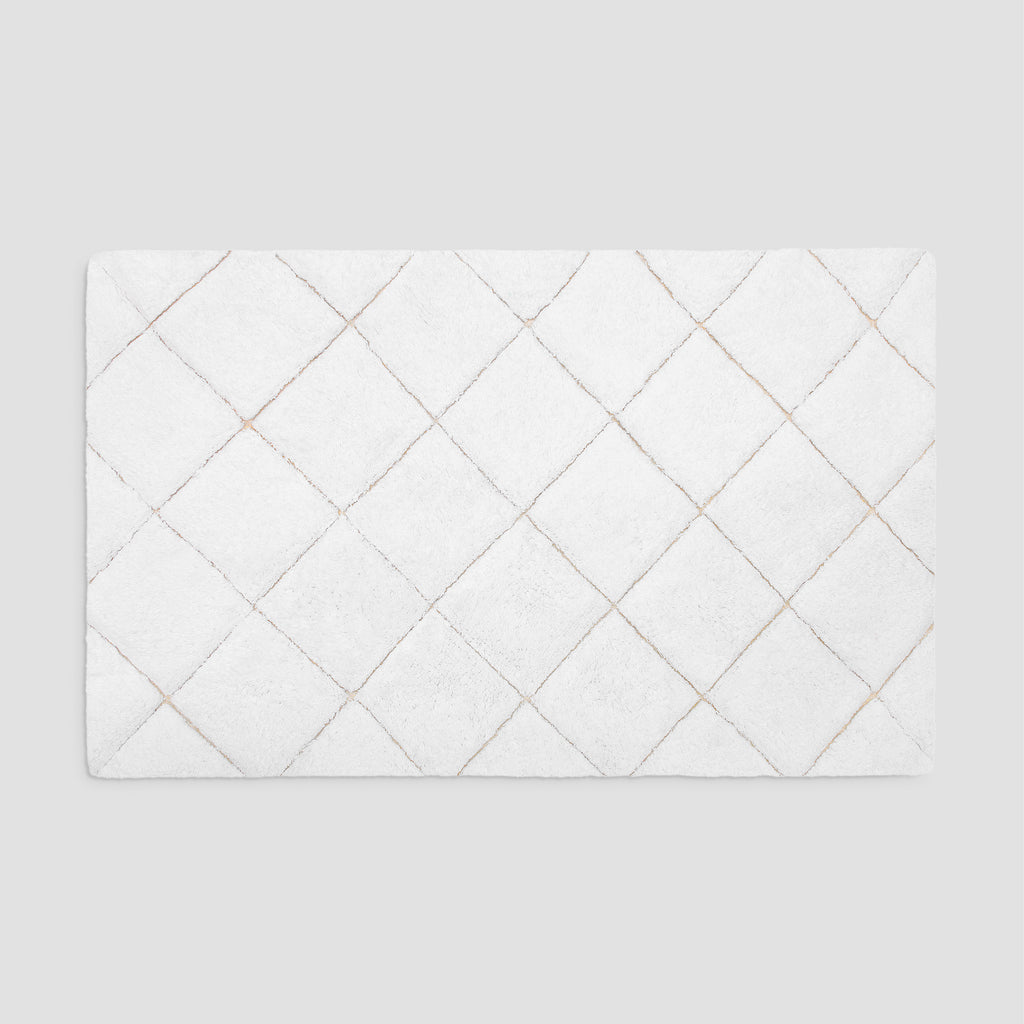 Details: Lush cotton bath mat with geometric design. Sheared terry cloth.