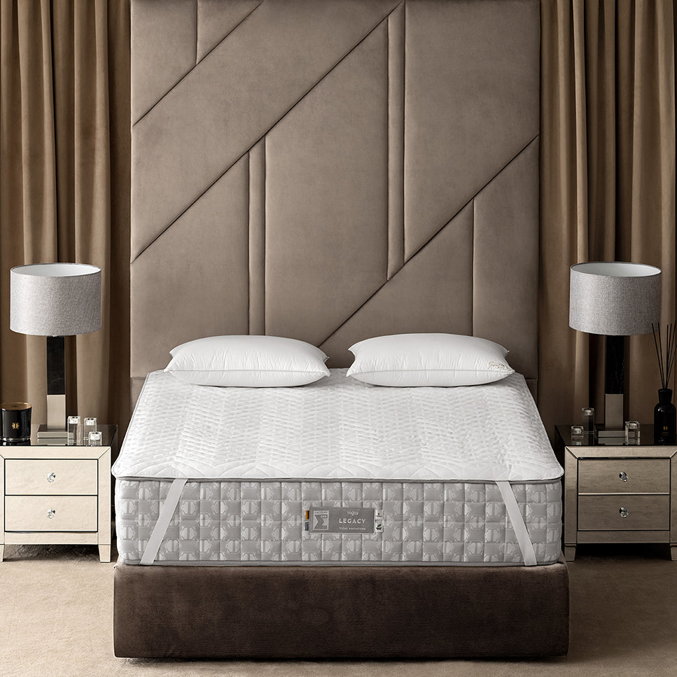 Maestro is a quilted mattress pad with a fixing rubber on all four sides.