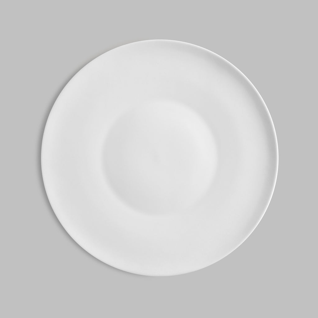 A dinner plate of Nea collection is made of thin snow-white bone china.