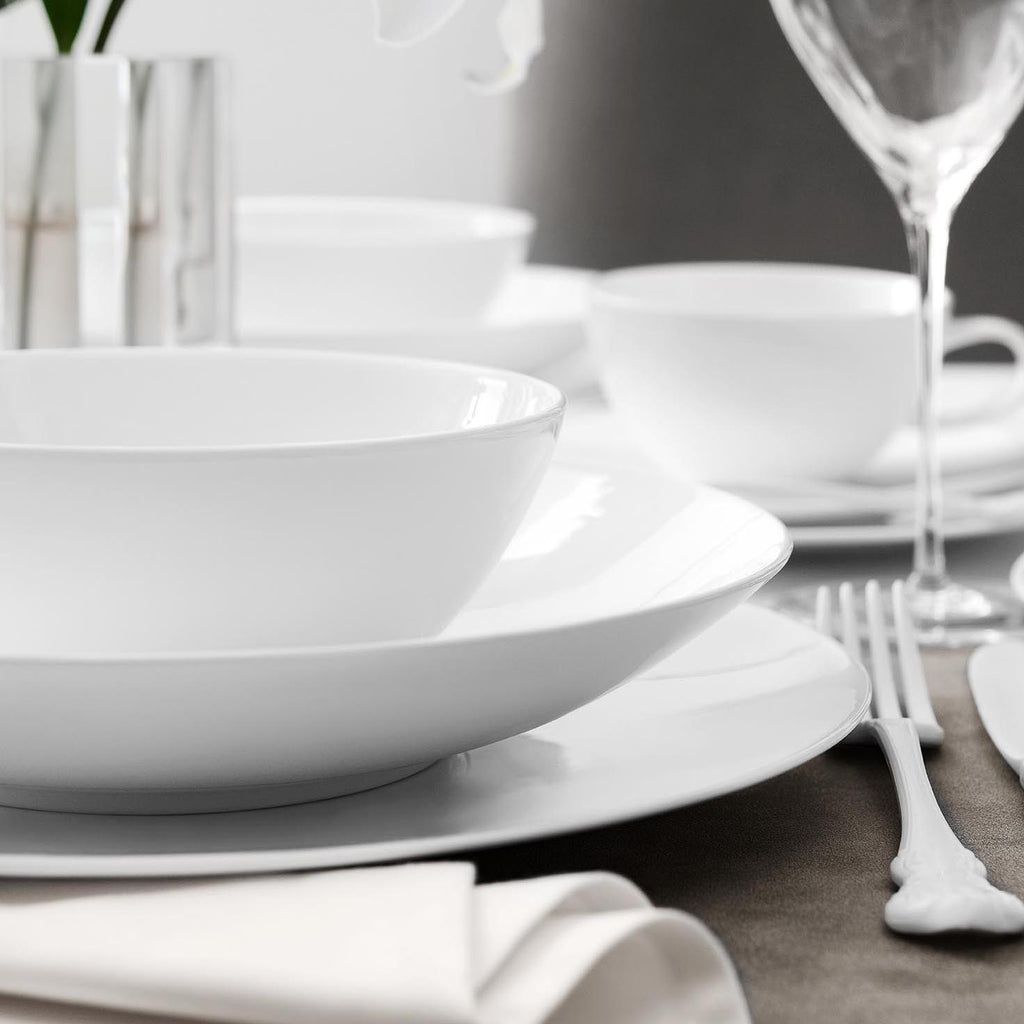 Despite its seeming fragility and finesse, this kind of china is much stronger that other types of ceramics. It stays almost the same for a long time: white and shiny. Bone china is not only the strongest but also the most beautiful, almost clear if held against the light. The simple and laconic design of Nea tableware combined with finesse of the snow-white china is a universal choice – such plates are perfect for an everyday use as well as a celebration.