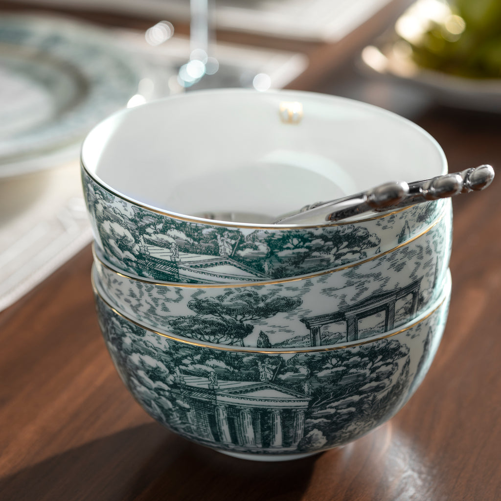 The plate is decorated with a custom-made monochrome ornament and edged with a spectacular shining 24 carat gold border. The print of Olympia shows a landscape of the ancient Greek Elysium, a heavenly garden, made in the engraving technique. Elegant tableware with elements of ancient panoramas is a part of Elysium collection, which gives you the opportunity to immerse in the aesthetics of Hellenic gardens, admire the beautiful Greek architecture and southern nature.