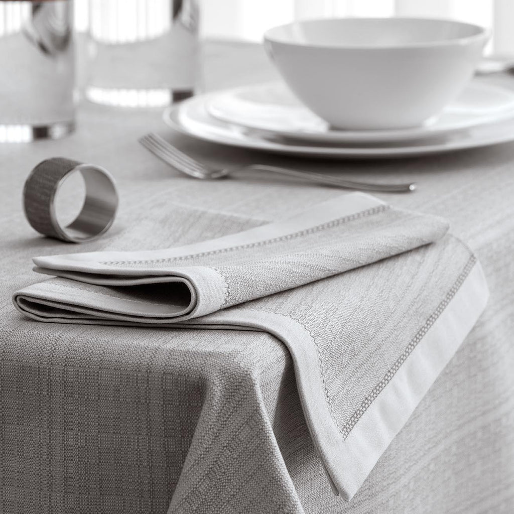 Such items are eco-friendly, hygienic, durable and do not electrify. The cotton household linens are easily washed and dry quickly. The material we all got used to is pleasant.The nice relief texture of this model is created by jacquard weave in different shades of grey. This visible and pleasant texture is accentuated by a smooth edging that borders the item along the perimeter. Renton resembles a tablecloth made of homespun unbleached canvas. Such a model will decorate both the interior in an eco-style and modern laconic surrounding in dim natural shades that are now on-tend.