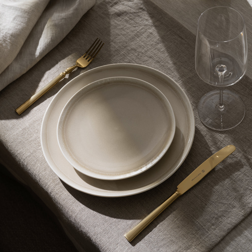 The smooth transition of hues on glazed porcelain of a plate reminds of the shimmering colors on smooth pebbles in the clear water of a stream. This decorativeness and comfortable grey-beige shade of Tomita make this tableware a perfect addition to country-style kitchens, ethnic interiors or settings with wooden furniture in natural shades. The dessert plate can be also complemented by other items of the Tomita collection.