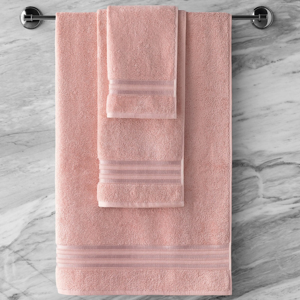 Details: Solid-colored towel with three satin stripes on two short sides.