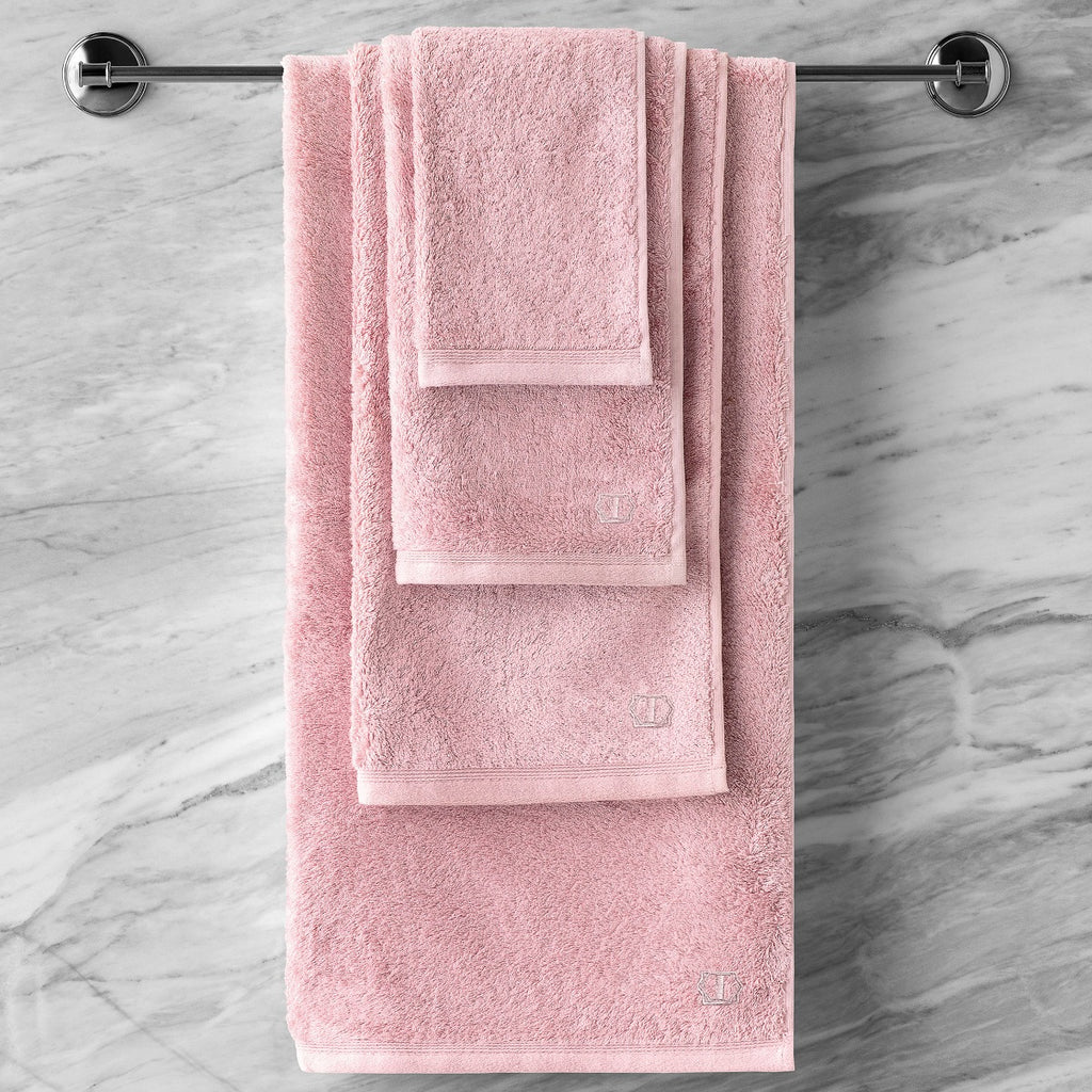 Terry towel in a shade of light tea rose decorated with embroidered inscription Togas, will look luxurious in any interior. The towels 'Poitiers' of different sizes and colors will be a great gift for any occasion.