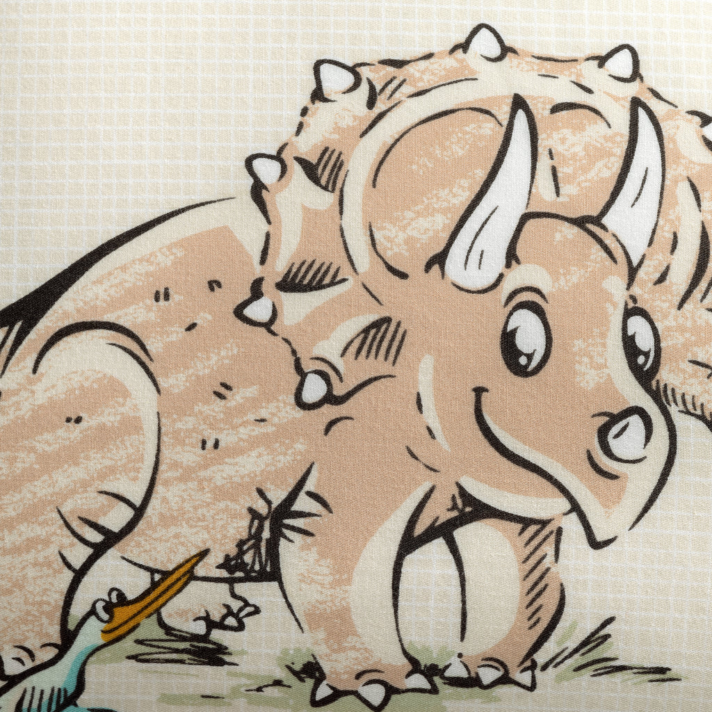 Dino represents an immersion into fascinating prehistoric times. The bed linen print is based on the famous animated movie showing dinosaurs and tropical plants of the Jurassic period. The pillowcases of the set are double-sided, with different dinosaurs. By turning the pillow over, the child can choose a dino-friend who will be by their side before going to sleep.