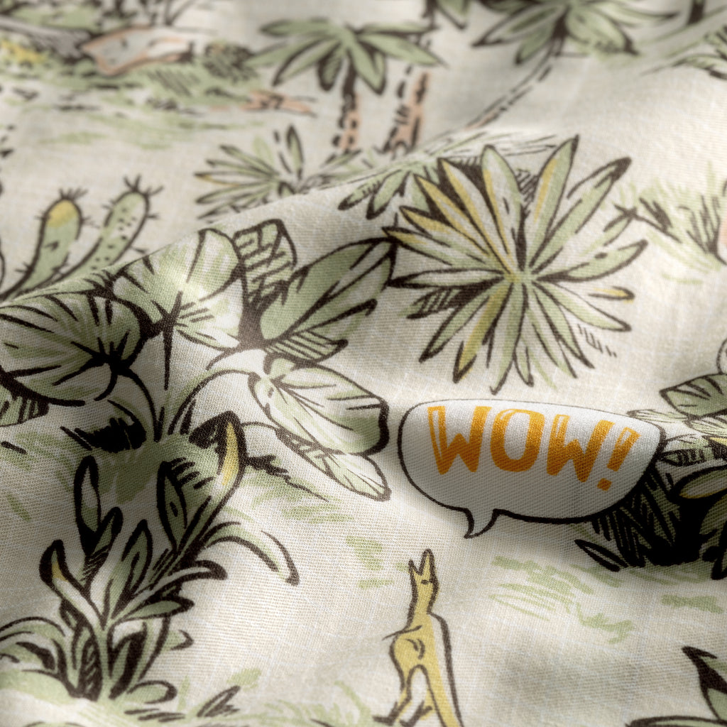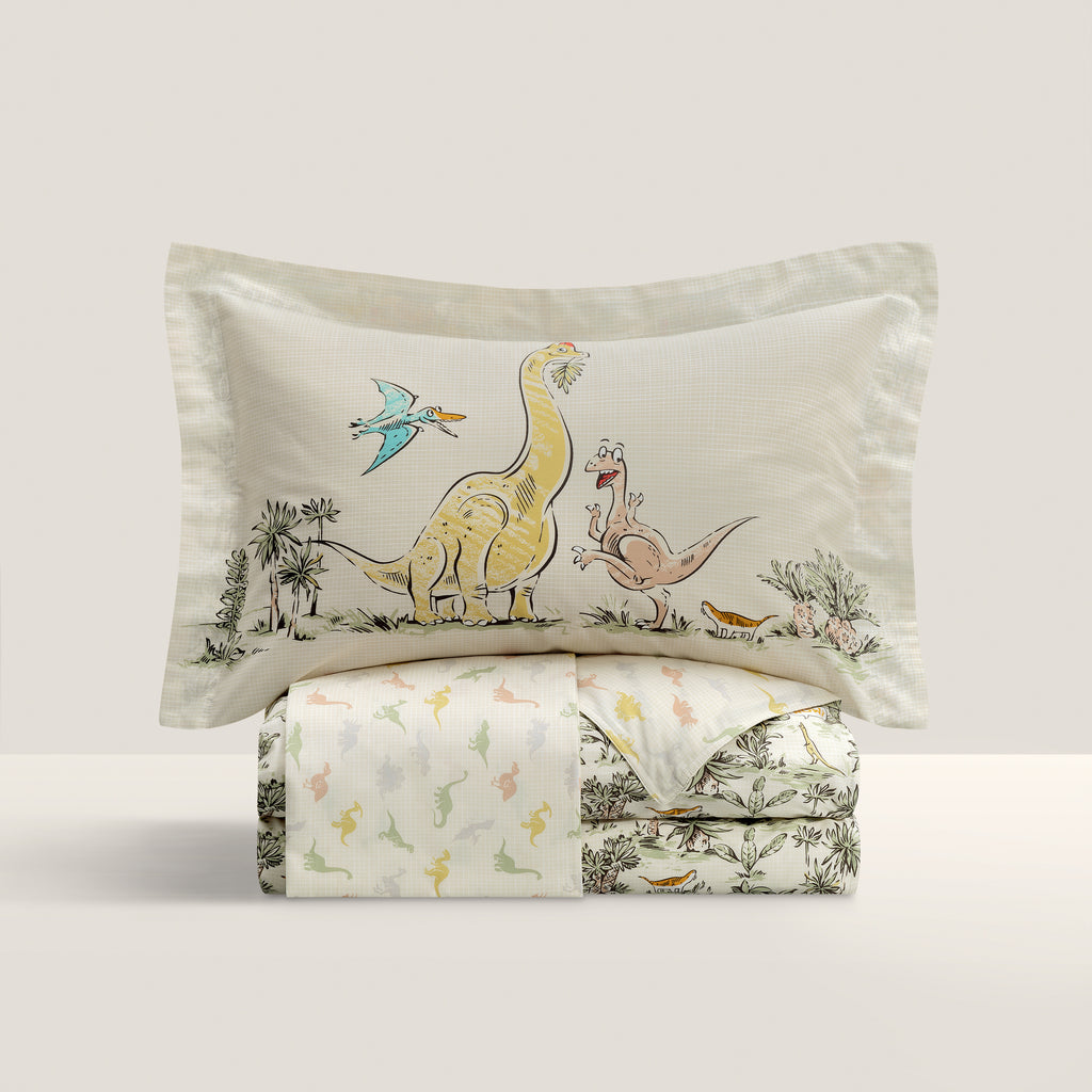 Details: Classic cut, an original dinosaur print on the pillowcases and duvet cover, printed sheet.