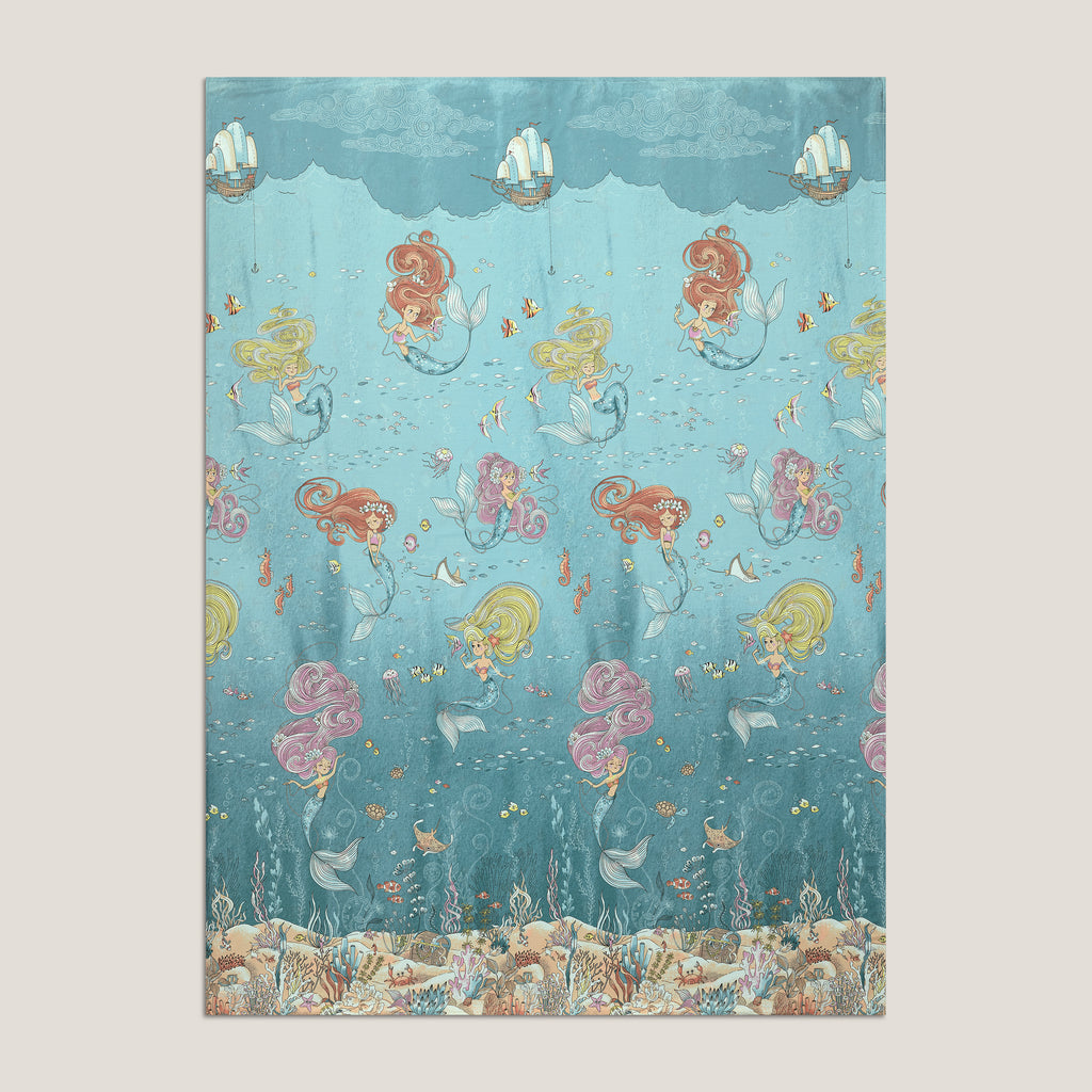 Details: Classic cut, an original print with mermaids on pillowcases and the duvet cover, the sheet is printed.