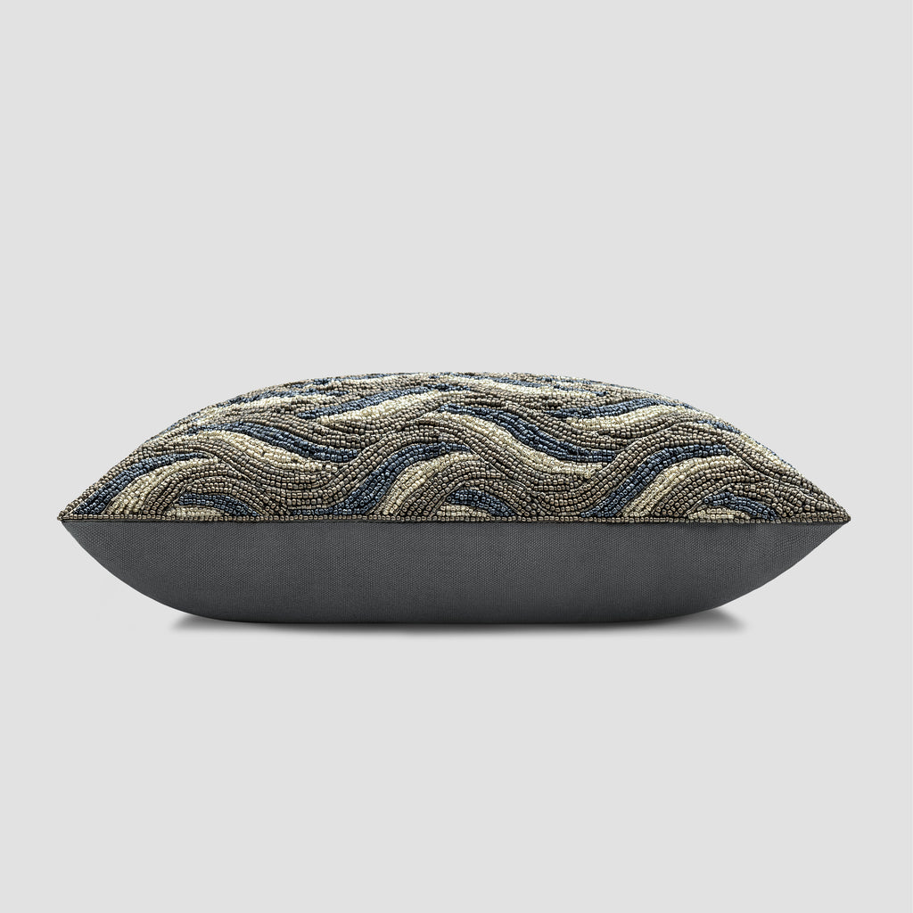Details: Cotton decorative pillow with a hand-beaded print.