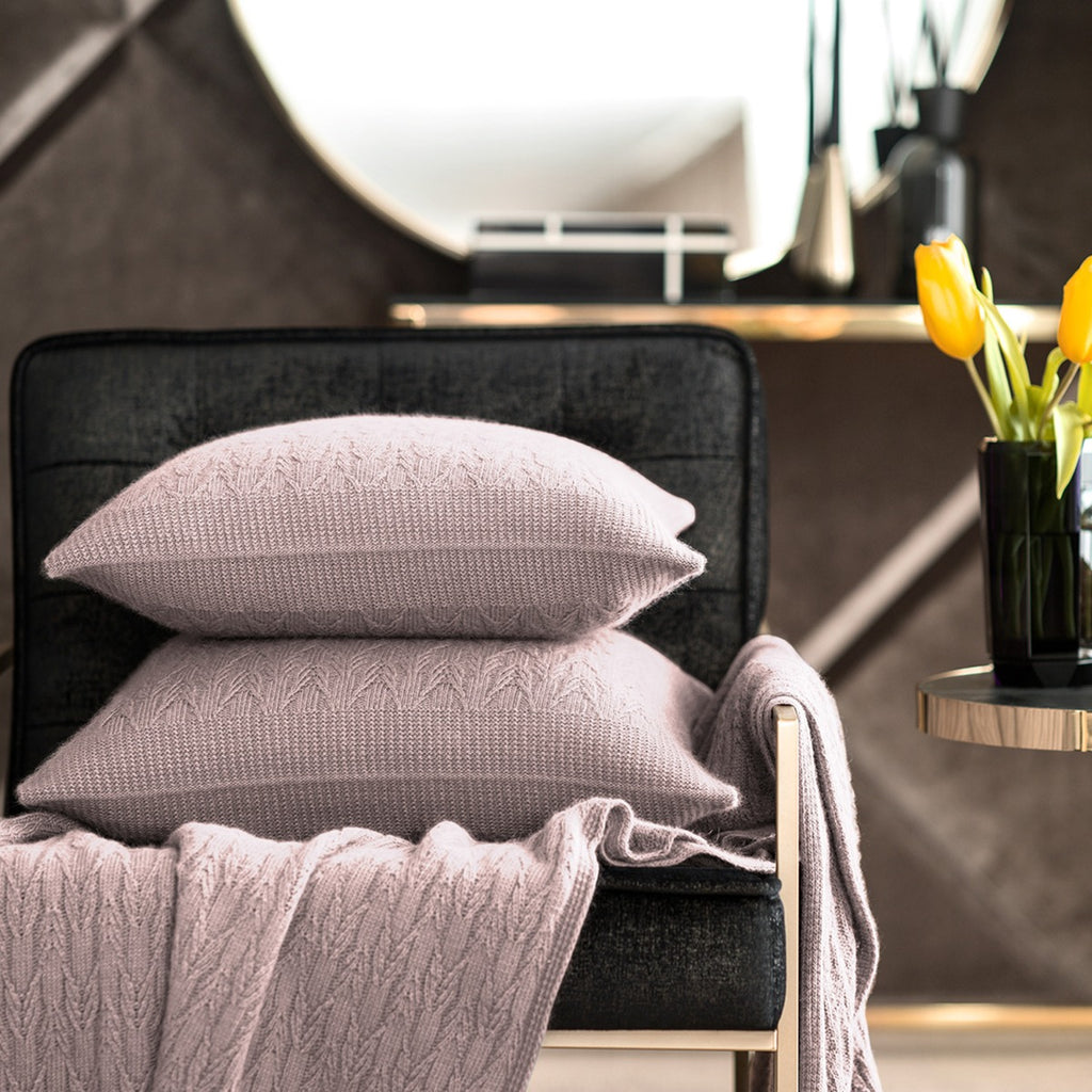 'Holty' is a decorative pillow with a soft knitted pillowcase. In its fabric, fluffy angora wool is combined with silky modal.