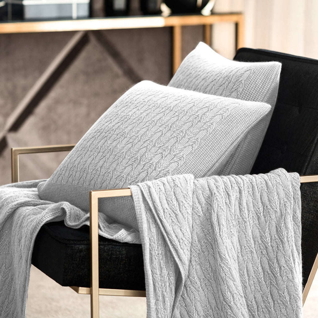 'Holty' is a decorative pillow with a soft knitted pillowcase. In its fabric, fluffy angora wool is combined with silky modal.