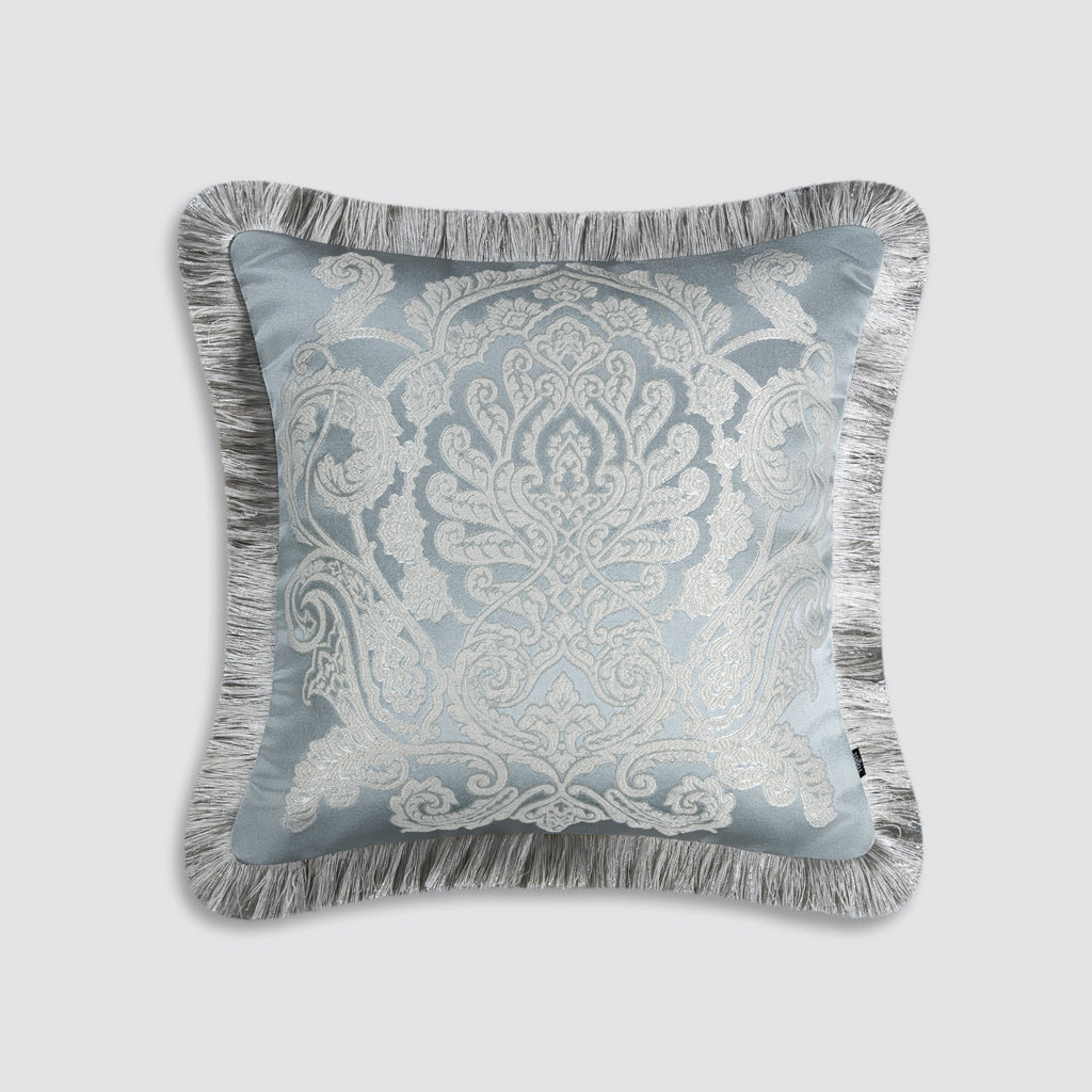 Details: Decorative jacquard pillow with a classic Damascus pattern and decorative fringe around the perimeter.
