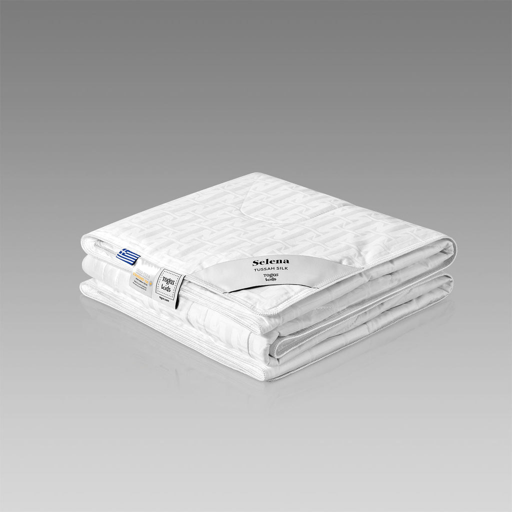 It is made of a silk variety - Tussah grade, the case - out of cotton jacquard. Its main advantage is climate control that enables the human body to maintain a comfortable temperature and releases a beneficial impact on it during sleep. An ideal choice both as an all season or summer duvet that will help kids keep cool in even the hottest of weather.