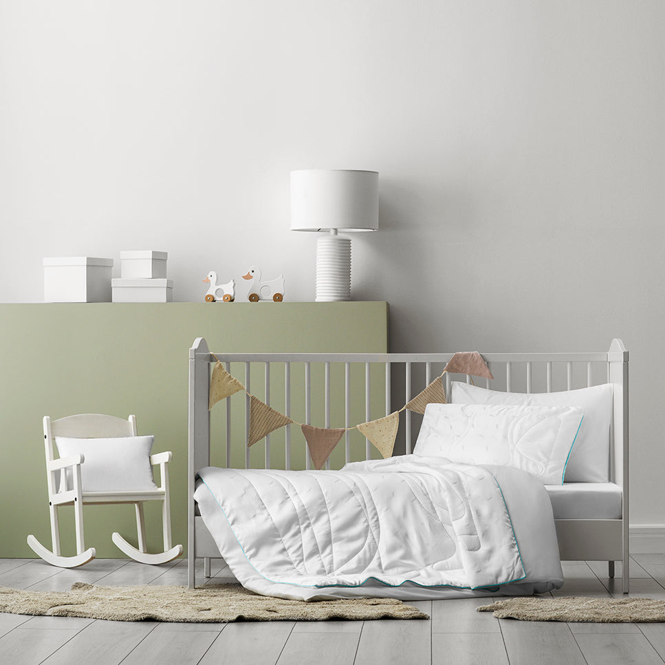This durable eucalyptus fiber is good at absorbing moisture and air circulation. The filling is soft and silky, the duvet is pleasant to the touch. This model provides a comfortable microclimate during sleep. Depending on outside conditions, your child will either be protected from getting too cold, or prevent them from overheating. Sensotex Dreams does not accumulate static electricity, it can be washed at home on the delicate wash cycle. No pesticides are used in the cultivation of eucalyptus, so eucalyptus fibers are organic, hypoallergenic and perfect for sensitive skin.The jacquard fabric of the Sensotex Dreams cover with 300 TC density is also made from 100% SENSOTEX® fibers. The fabric is treated with a special Kefalis solution based on Ionian seaweed extract. This treatment makes the material softer and increases its silkiness by 30%, it becomes 20% less wrinkled and 10% stronger. The dense cover is air-permeable and pleasant. It is decorated with the original jacquard pattern and blue piping. A special anatomic stitching of the duvet allows to significantly increase its durability.