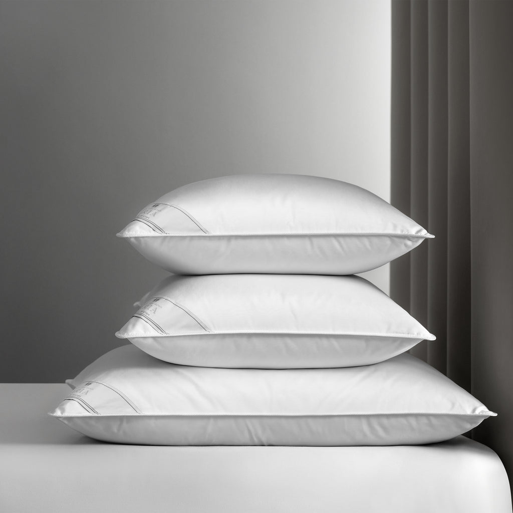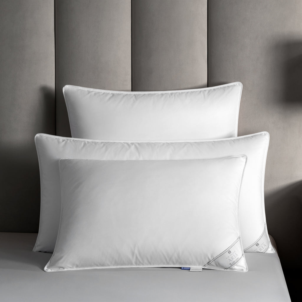 Details: The pillow cover is velvety Aloe Vera-impregnated microfiber, filled with goose down. The pillow is trimmed with white tape.