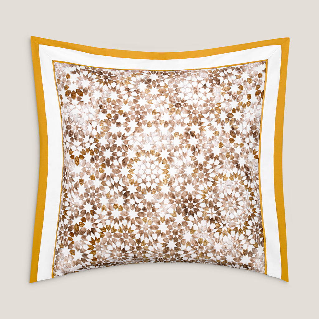 The intricate interweaving of the lines of the ornament on the “Noorim” fabric and its warm golden hues resemble the stylized oriental girih pattern. It expresses the perfection of geometric beauty and is a symbol of the divine principle. The warm palette is the colors of hot sand and hot sun. Pillowcases on the reverse side are monochromatic - bright sunny mustard color. The duvet cover and pillowcases are decorated with double decorative borders. This set looks elegant and effective, it reflects the oriental brightness of colors, symbolism and the philosophical meaning of Islamic ornaments.