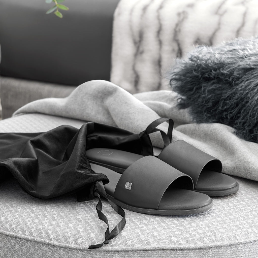 These slippers will decorate the interior of any home, will look great on a walk. Slippers 'Gloria' are decorated with elegant decor-gold logo Togas. This beautiful model is offered in an elegant velvet storage bag and will be a perfect gift for every woman.