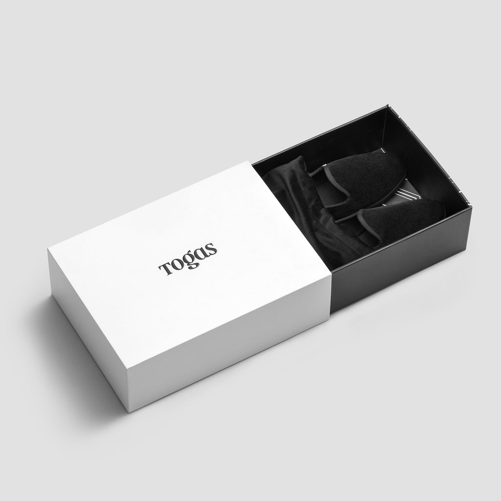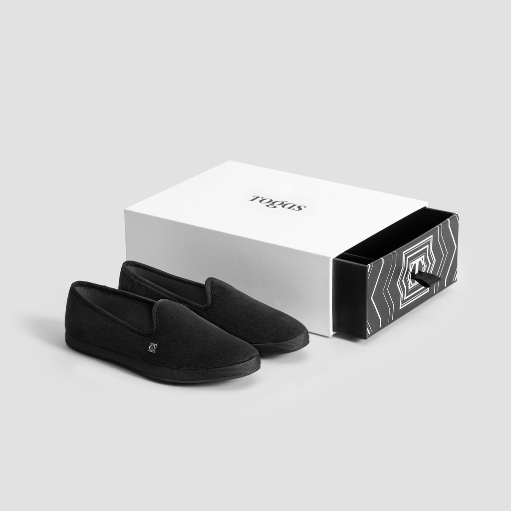 Enhanced with a plush cotton insole, these slippers offer unparalleled comfort. Their closed design contours the foot gracefully, echoing the chic style of contemporary slip-ons. The secure fit ensures stability, combining safety with sophistication. With their rich black tone, these velvet slippers are versatile enough for both indoor and outdoor use, allowing you to transition effortlessly from your living room to the outdoors while still enjoying comfort. Each pair is accompanied by a luxurious velvet storage pouch, making them a delightful gift for any discerning woman.