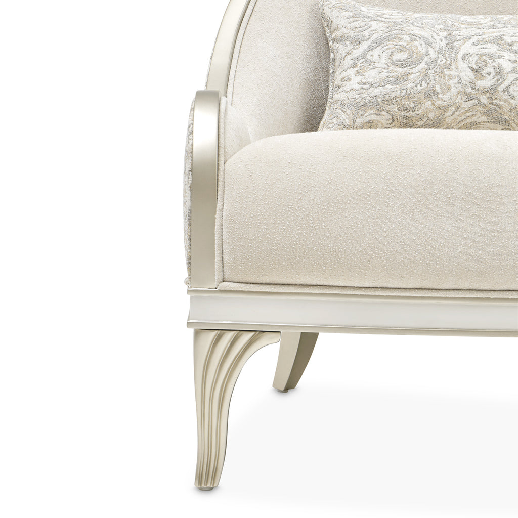 - Lustrous Pearl-Finished Frame: A luminous finish enhances the frame’s elegant form, elevating the sofa’s timeless appeal.