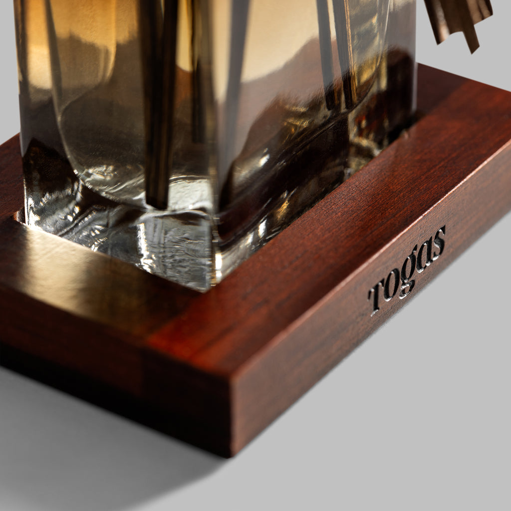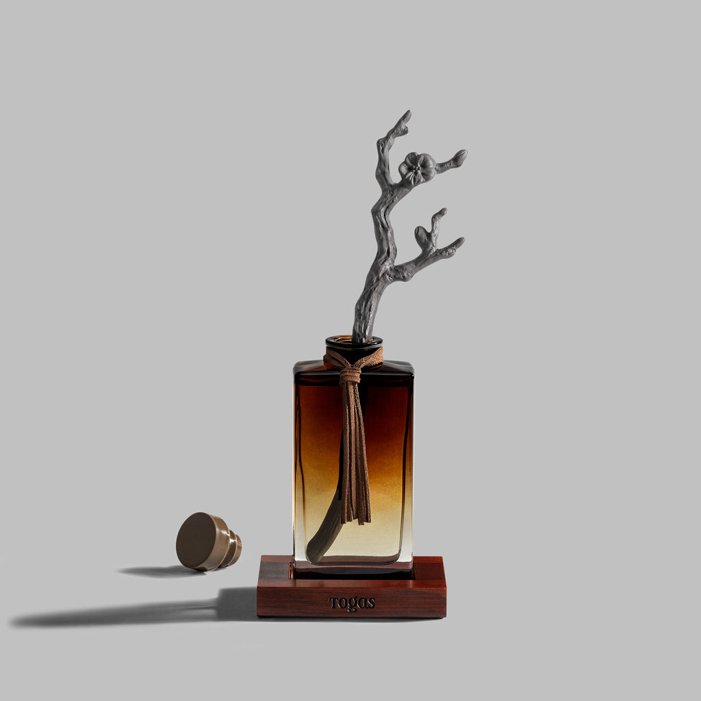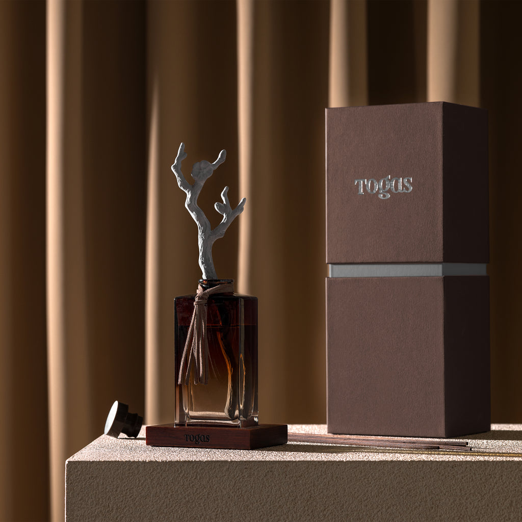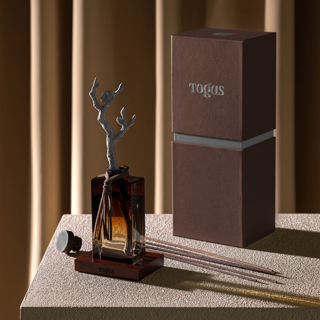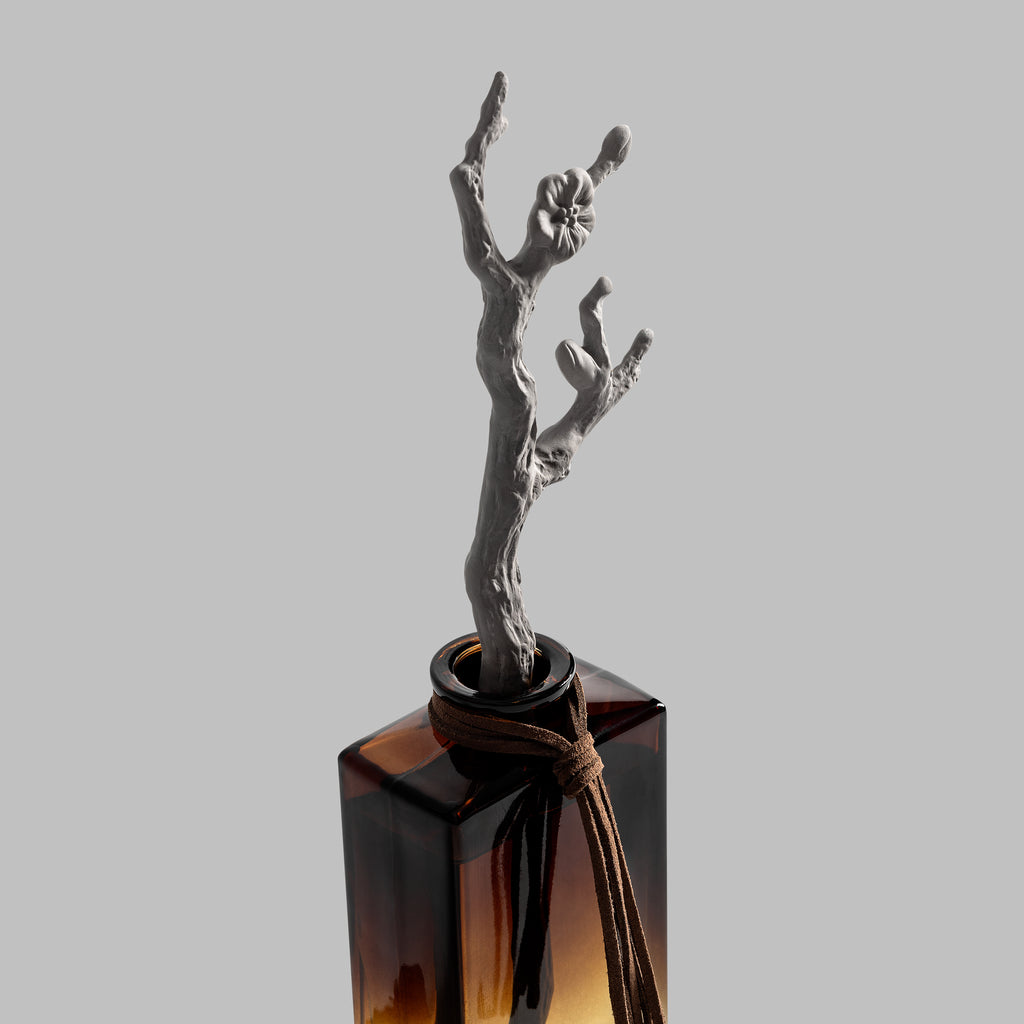 Lemon and Cypress is not only an enticing fragrance, but also an elegant glass diffuser bottle with a gradient transition of amber shades from golden yellow to rich brownish amber color. A stylish copestone is a refined tree branch made of special ceramic, which is inserted into the bottle and used for aromatization. Such an accessory will decorate a shelf or console in the living room and fill it with a unique aroma.