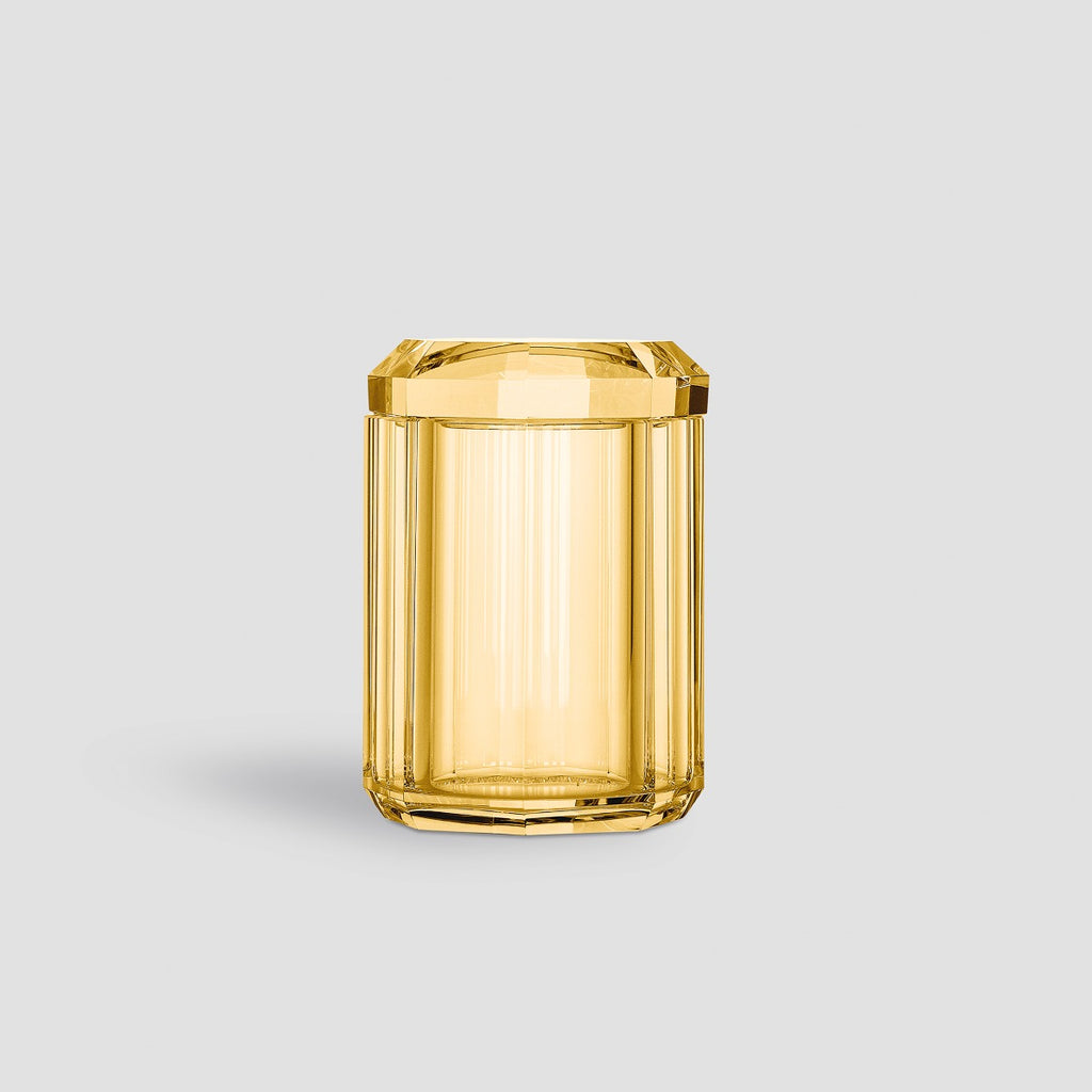 Marble bathroom accessories are heavy, stable and durable. The classically shaped vase is decorated with a gold metal rim, which emphasizes the warm shades of the natural marble pattern. Tateo is closed securely with a lid protecting the cotton pads from moisture. Accessories made of colored marble will adorn a classic bathroom setting, Art Deco or Empire style, and will also please everyone who loves gorgeous natural textures in interiors.