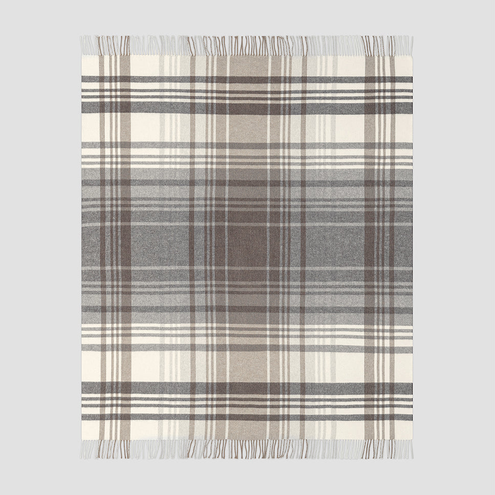 Details: Classic plaid throw made of silky fabric. Fringe trim.